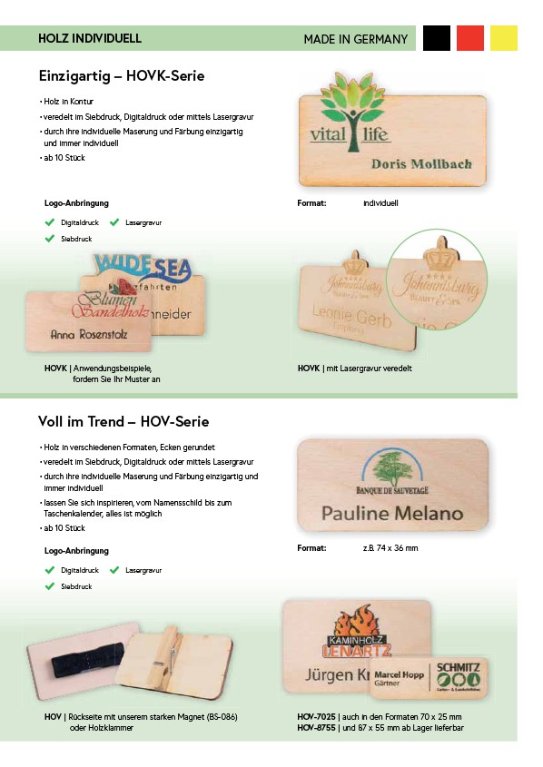 • veredelt im Siebdruck, Digitaldruck oder mittels Lasergravur