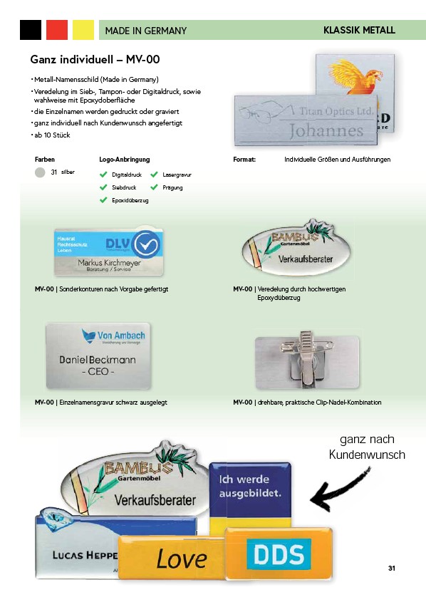 MV-00 | Einzelnamensgravur schwarz ausgelegt MV-00 | drehbare, praktische Clip-Nadel-Kombination