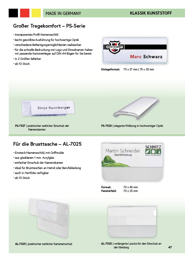 • einfacher Einschub der Namenskarten