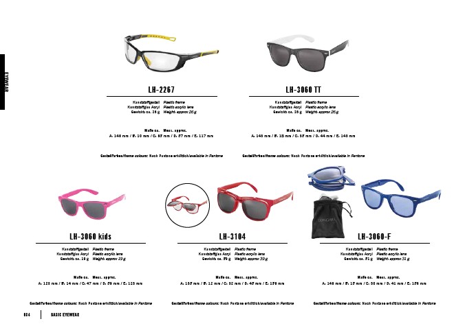 Gestellfarben/frame colours: Nach Pantone erhältlich/available in Pantone Gestellfarben/frame colours: Nach Pantone erhältlich/available in Pantone Gestellfarben/frame colours: Nach Pantone erhältlich/available in Pantone