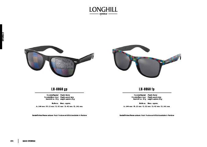 Gestellfarben/frame colours: Nach Pantone erhältlich/available in Pantone Gestellfarben/frame colours: Nach Pantone erhältlich/available in Pantone