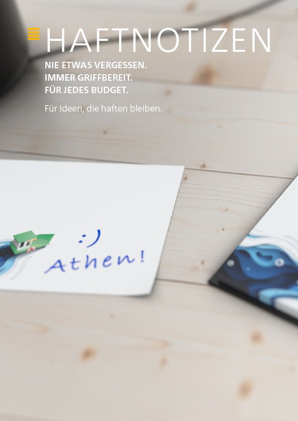 HAFTNOTIZEN NIE ETWAS VERGESSEN. IMMER GRIFFBEREIT. FÜR JEDES BUDGET. Für Ideen, die haften bleiben.
