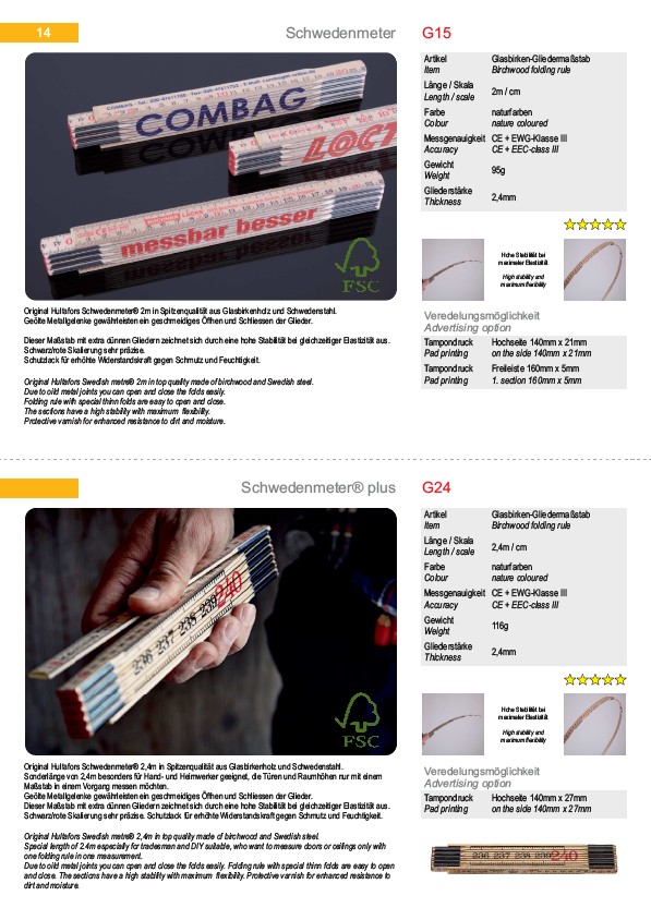 Original Hultafors Schwedenmeter® 2m in Spitzenqualität aus Glasbirkenholz und Schwedenstahl.