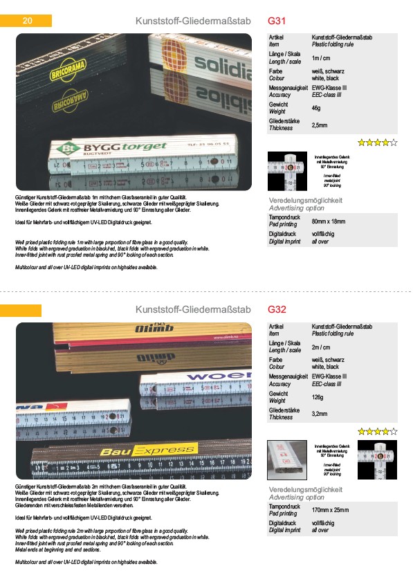 20 Günstiger Kunststoff-Gliedermaßstab 1m mit hohem Glasfaseranteil in guter Qualität.