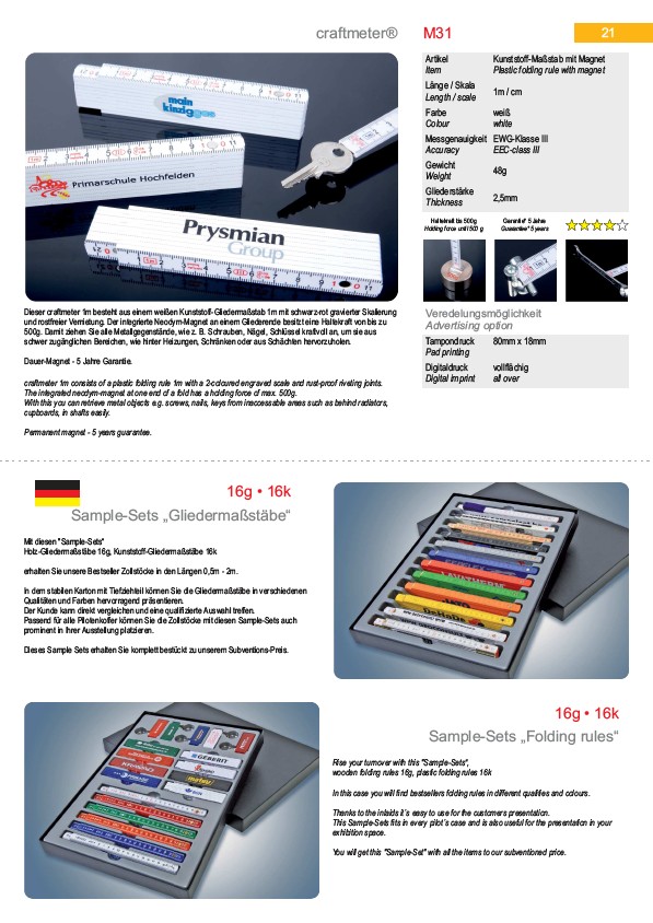 Holz-Gliedermaßstäbe 16g, Kunststoff-Gliedermaßstäbe 16k