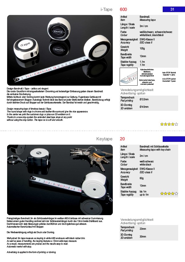 As well as ease of handling, the keyring features a 13mm wide tape measure.