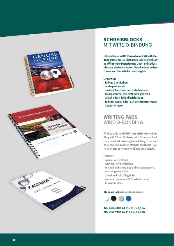 Schreibblocks in DIN-Formaten mit Wire-O-Bindung