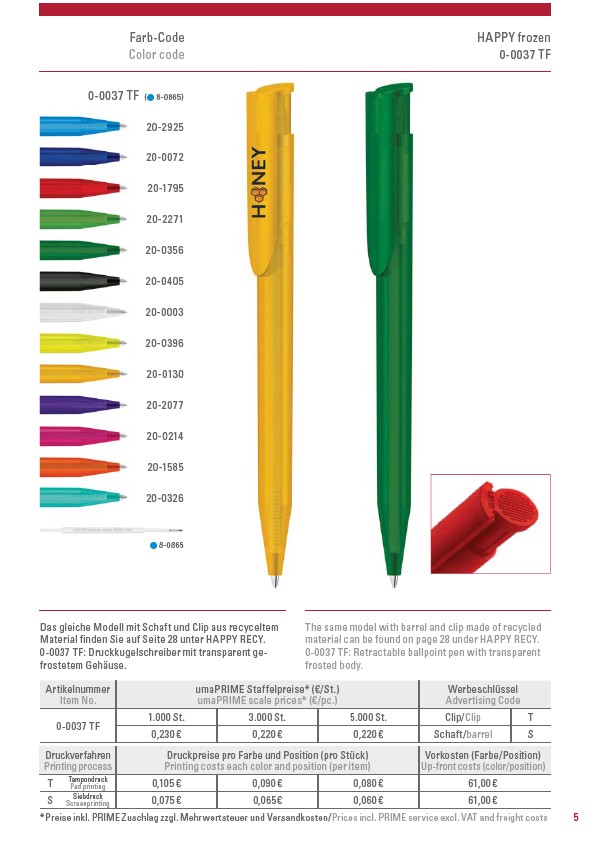 0-0037 TF: Druckkugelschreiber mit transparent gefrostetem