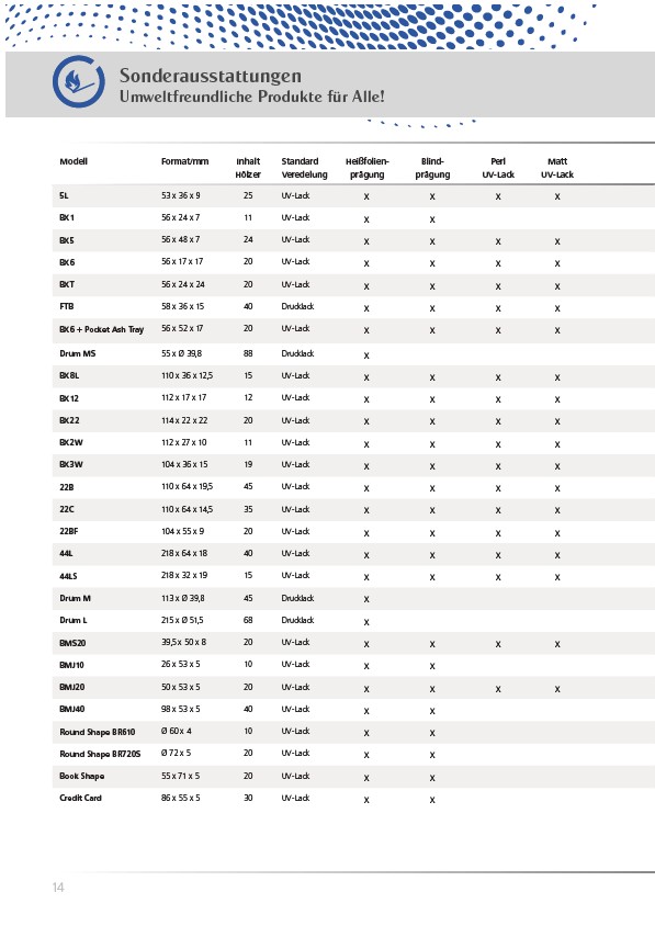 22C 110 x 64 x 14,5 35 UV-Lack x x x x
