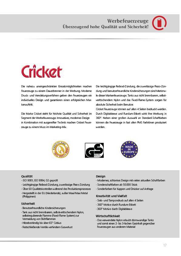 in Kombination mit ausgereifter Technik machen Cricket Feuerzeuge