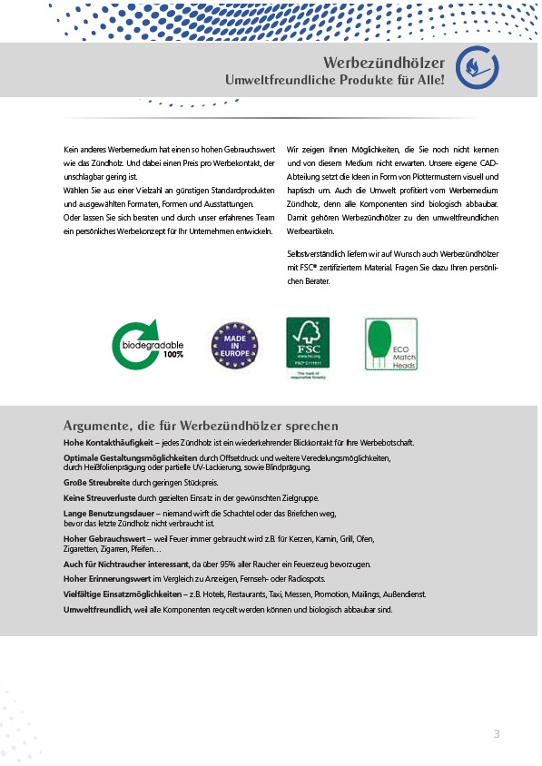 Damit gehören Werbezündhölzer zu den umweltfreundlichen